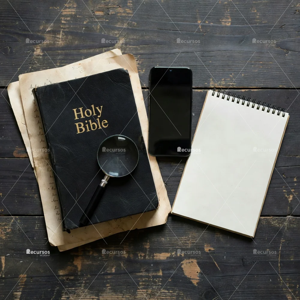 ¿Necesitas imágenes profesionales para la comunicación visual de tu iglesia? Esta fotografía de alta resolución ofrece una composición de estudio bíblico con Biblia y smartphone, lupa y notas sobre madera rústica. Es ideal para ilustrar series de sermones sobre sabiduría o revelación divina hoy. Al usar este recurso, ahorras tiempo valioso y obtienes una estética ministerial sofisticada sin el costo de una sesión fotográfica privada. Es un elemento versátil para web y banners impresos. Descarga inmediata tras la compra. Soporte incluido. ¡Eleva la imagen de tu iglesia hoy!