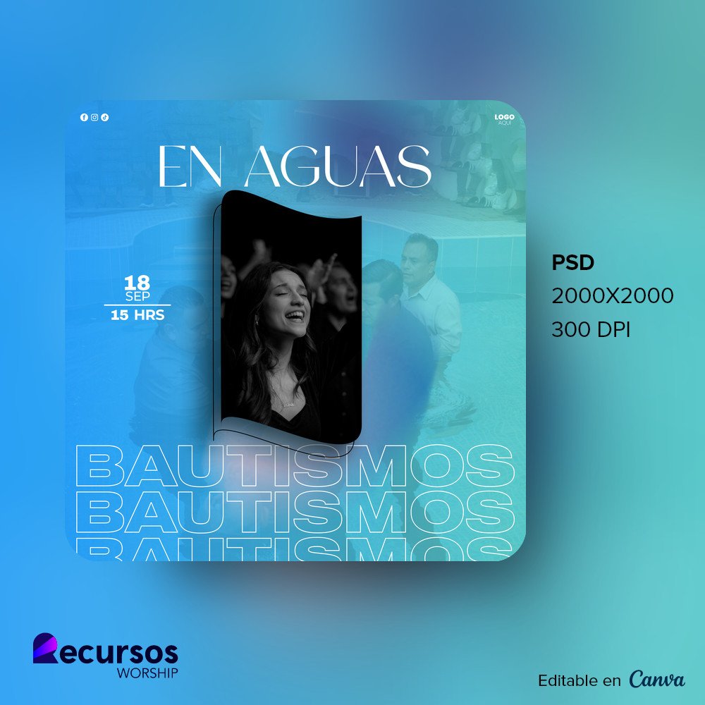 ¿Necesitas anunciar tus bautismos con excelencia? Esta plantilla profesional te ayuda a comunicar este paso de fe sin conocimientos de diseño previo. Incluye archivo digital en dimensiones de ratio 1:1. Compatible con Canva. Capas organizadas para edición rápida de textos, colores y elementos visuales. Ahorra horas de trabajo creativo. Cualquier miembro de tu ministerio puede personalizarla fácilmente. Resultado profesional garantizado con esta plantilla de bautismo en las aguas azul moderno para iglesia y eventos religiosos plantilla cuadrada para redes. ¡Potencia tu imagen!