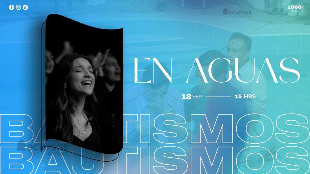 ¿Deseas proyectar anuncios que inspiren a tu congregación? Esta plantilla profesional te ayuda a lucir pantallas increíbles sin conocimientos de diseño. Incluye archivo editable en formato 16:9. Compatible con Photoshop. Capas organizadas para edición rápida de textos, colores y elementos gráficos. Ahorra horas de trabajo creativo. Cualquier miembro de tu ministerio puede personalizarla fácilmente. Resultado profesional garantizado con la plantilla de bautismo en las aguas azul moderno para iglesia y eventos religiosos plantilla horizontal para proyector. Soporte incluido.