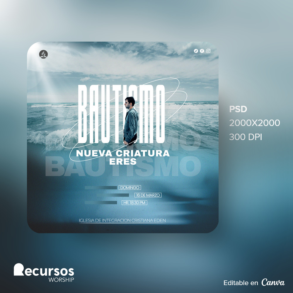 Plantilla de Bautismo Para Iglesias con diseño Moderno Editable 1:1 Canva