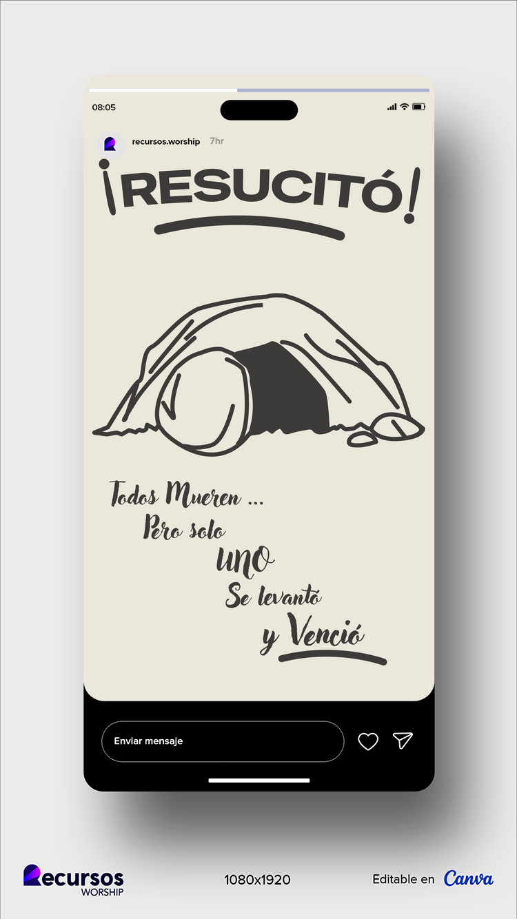 Optimiza tu comunicación con la plantilla de diseño para redes sociales de la Resurrección plantilla vertical para stories. Es perfecta para anunciar la victoria de Jesús con un estilo minimalista y moderno. Ideal para Reels o Historias con tipografía clara y estética superior.