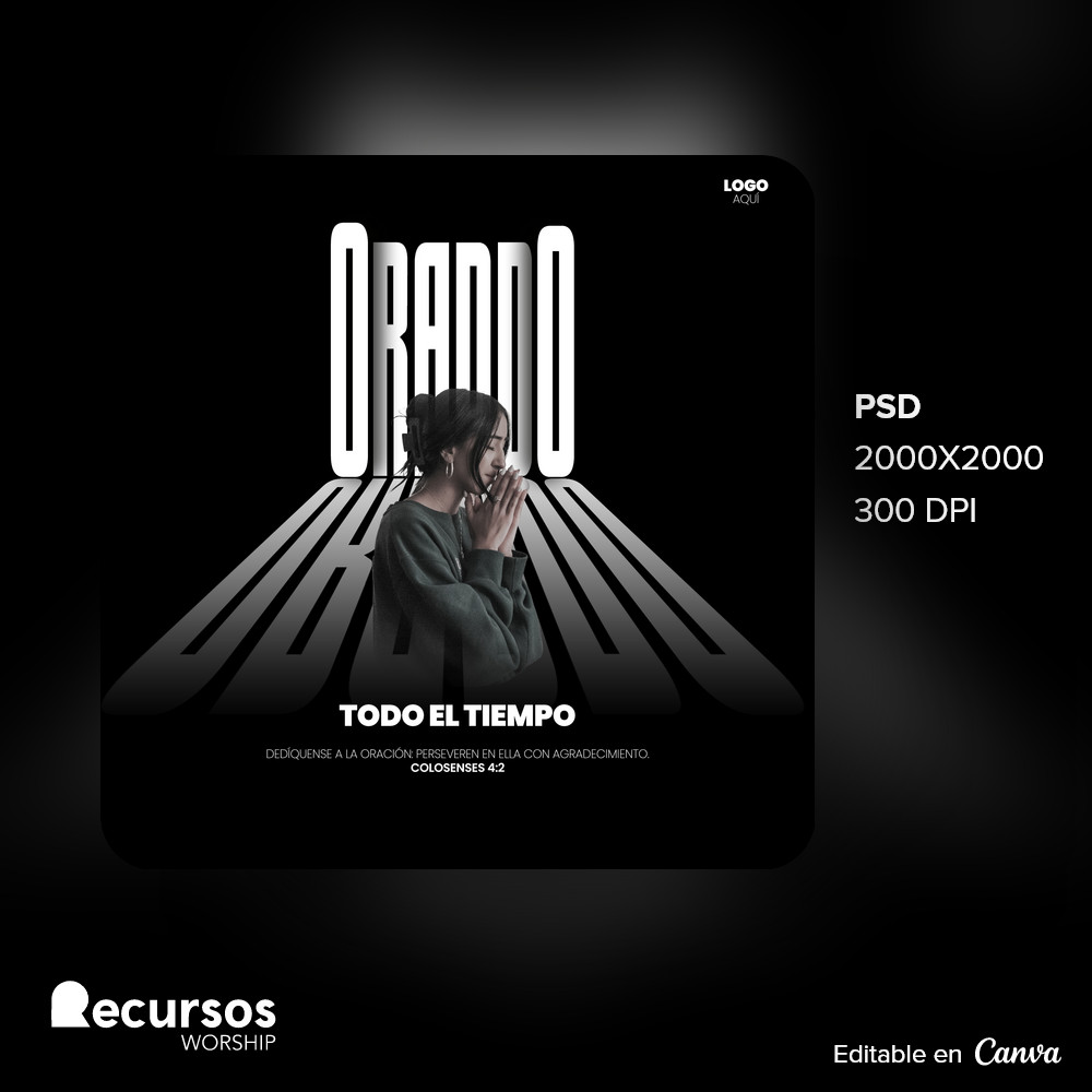 Plantilla para Publicaciones de Oración | Diseño Minimalista en Blanco y Negro 1:1 Canva