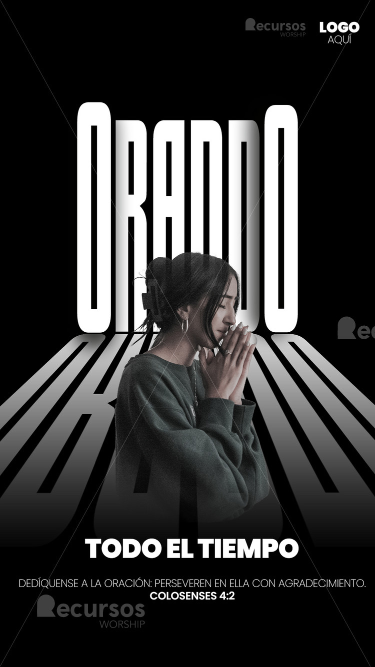 Esta plantilla de publicación para redes sociales con oración moderna plantilla vertical para stories destaca por sus contrastes en blanco y negro. Aprovecha este diseño elegante para captar la atención en dispositivos móviles y fomentar la oración en tu comunidad cristiana.