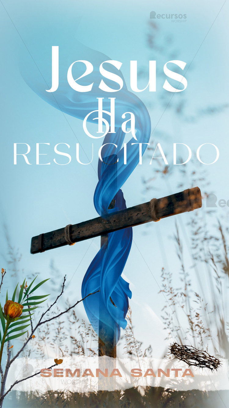 Nuestra plantilla de Semana Santa con la Cruz de la Resurrección para iglesias plantilla vertical para stories es perfecta para realzar los cultos de Pascua con un diseño sereno. Use este formato dinámico para invitar a su audiencia a través de dispositivos móviles con elegancia.