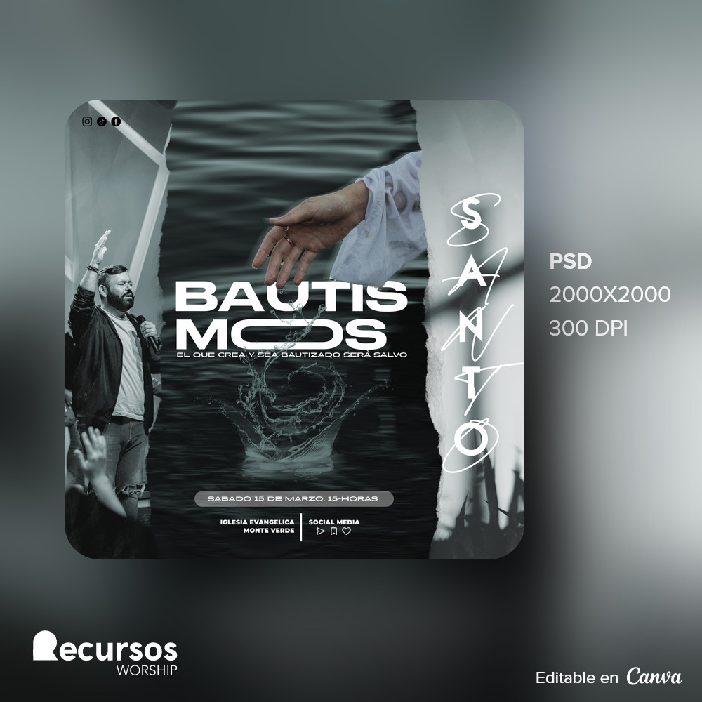 Optimice la comunicación de su iglesia con esta plantilla de bautismo moderna y completamente editable. Esta plantilla moderna y profesional de bautismo para iglesias cristianas editable plantilla cuadrada para redes sociales asegura un impacto visual inmediato y ministerial hoy.