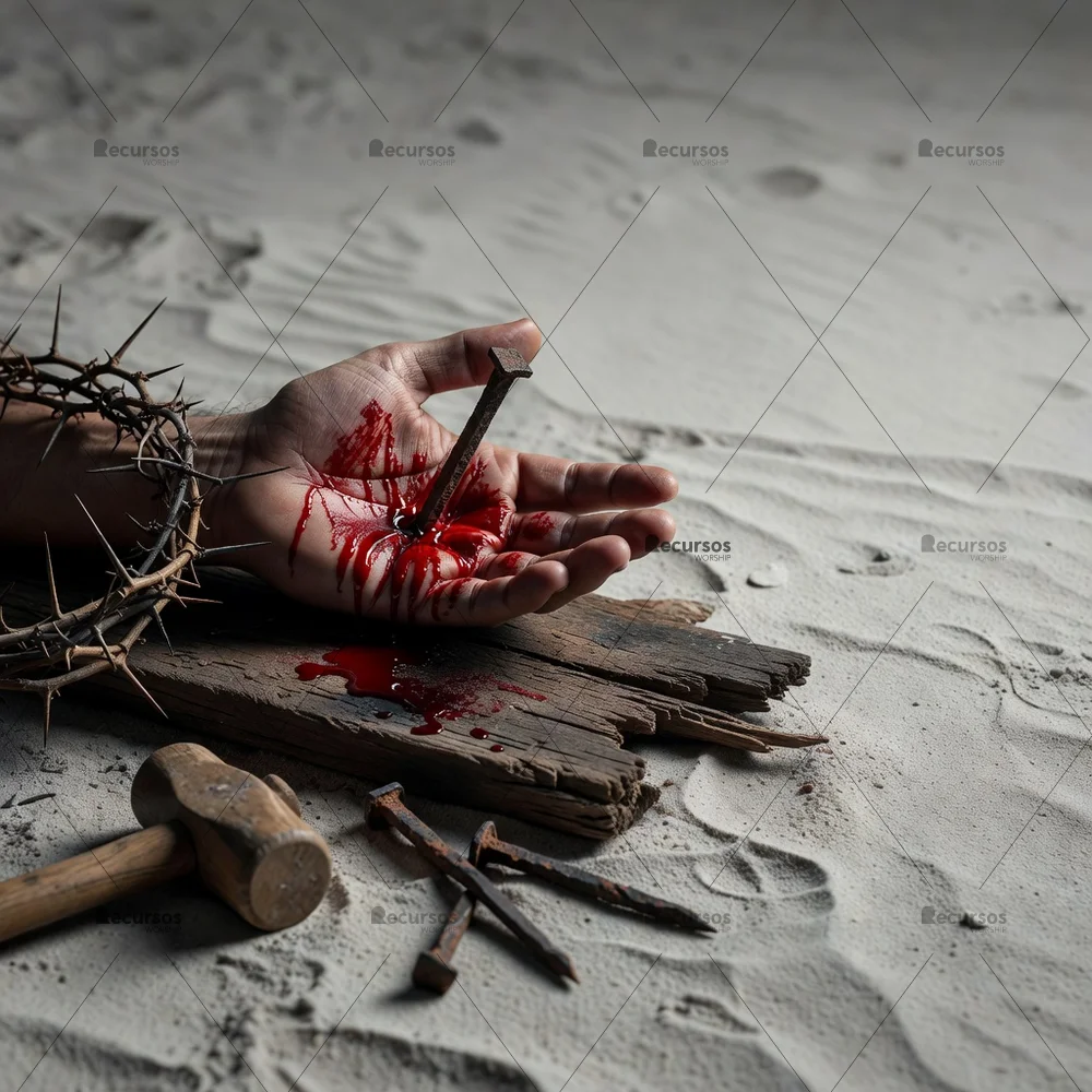 ¿Necesitas imágenes profesionales para la comunicación visual de tu iglesia? Este potente recurso captura la crucifixión con una mano clavada sobre madera y corona de espinas, ofreciendo un realismo cinematográfico superior. Es perfecta para series de sermones, fondos de adoración o publicaciones de Viernes Santo en redes sociales. Obtén una estética de cine que cautiva a tu congregación, logrando un impacto emocional profundo sin la necesidad de organizar costosas sesiones fotográficas profesionales. Descarga inmediata tras la compra. Soporte incluido. ¡Eleva la imagen de tu iglesia hoy!